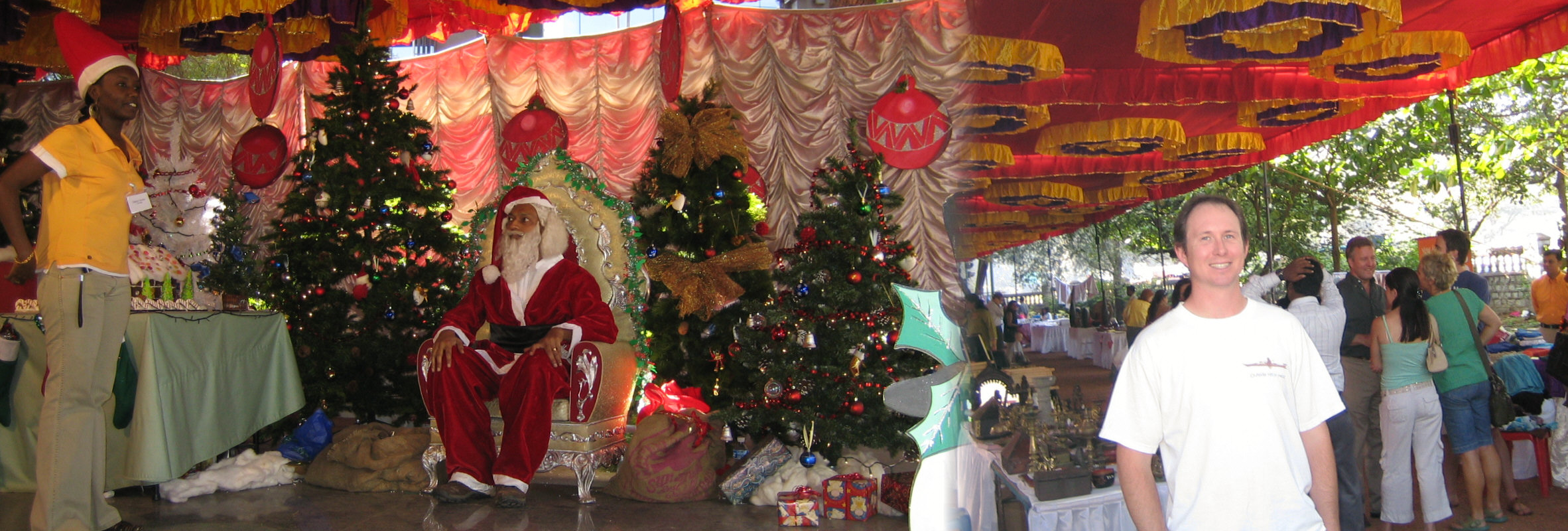 sunglasses, cell phone charges and magazines sold Santa Clause hats. The malls had Christmas Trees and